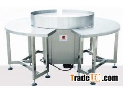 This working table is suitable for sending the bottles out in the field of agrochemicals and cosmetics. It can be matched with the filling line. (The diameter of the round plate can be designed into 900mm and 1200mm). It uses the France Schneider frequency converter; the speed can be adjusted according to the capacity of the filling line.